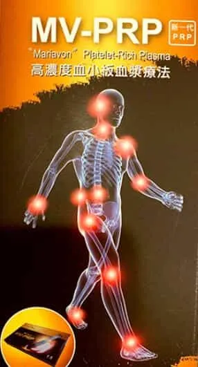 採用MV-PRP產品製備高濃度血小板血漿(PRP),除可高效率地從少量的字體血液中,萃取出高濃度的血小板血漿外,搭配醫師專業的診療與注射手法使用,大大提高傷後治愈,改善生活品質的期待。